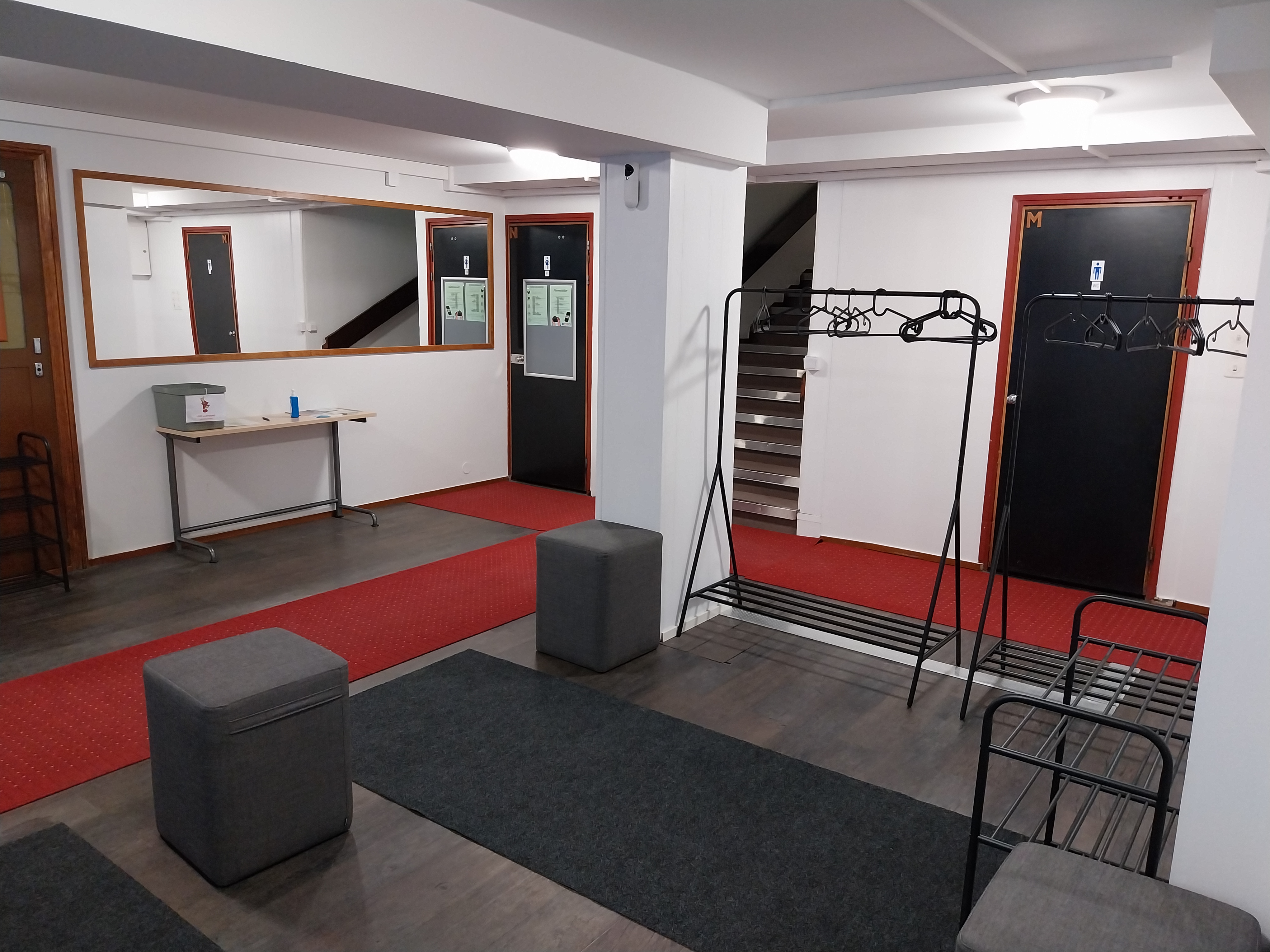 - naisille ja miehille pukuhuoneet, joissa suihkut ja vessat