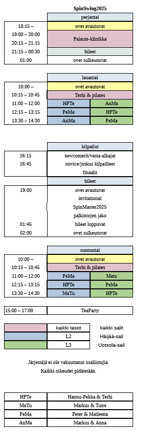 Ota ruutukaappaus vasta ihan lähellä tapahtumaviikonloppua, jotta saat päivitetyimmän version itsellesi. ALAPUOLELLA OLEVA AIKATAULU ON SUUNTAA ANTAVA JA VIIME VUODELTA!